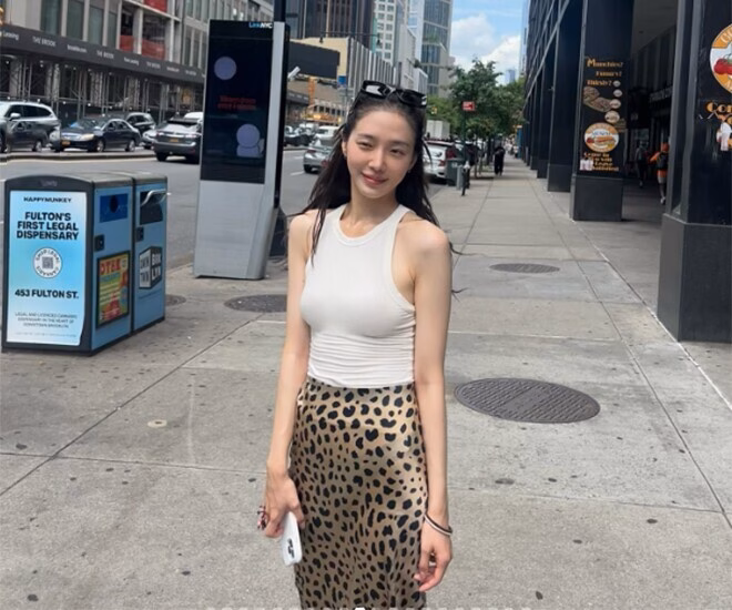Đầu tiên, chúng ta có chân váy satin – một lựa chọn hoàn hảo cho những cô nàng muốn tỏa sáng với vẻ đẹp thời thượng. Với chất liệu mềm mại và mát lạnh, chân váy satin tạo nên sự cuốn hút nhờ độ bóng nhẹ tự nhiên. Nữ diễn viên Park Kyu-young là minh chứng cho vẻ đẹp này khi cô diện chân váy satin họa tiết da báo nổi bật với áo tank top trắng đơn giản. Sự kết hợp này không chỉ mang lại vẻ đẹp tinh tế mà còn thể hiện sự tự tin và phong cách của người mặc.