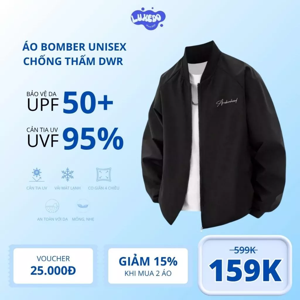 Một sản phẩm đáng chú ý trên thị trường hiện nay là Áo khoác bomber dù 2 lớp trượt nước cản gió chống nắng unisex nam nữ với giá chỉ còn 129.000 VND (giá gốc 162.540 VND). Sản phẩm có khả năng chống nắng hiệu quả, thiết kế unisex và có thể mua tại đây.