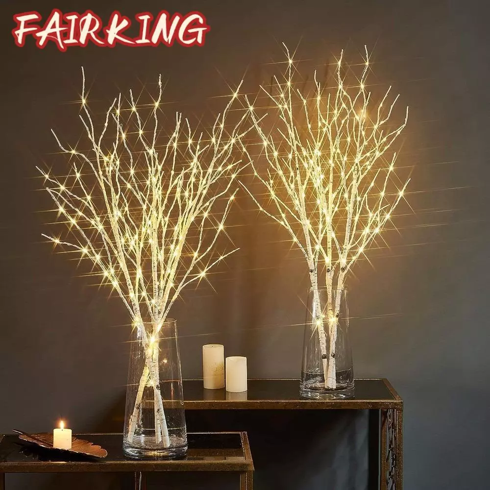 🔥 FAIR KING White Birch Branch Light, Cây phát sáng 70cm / 50LED Dây nhánh cây thông Noel, Đèn bàn ăn nhân tạo vận hành bằng pin Lễ hội đang giảm giá!