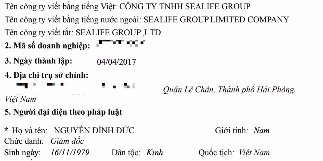 Thông tin từ Cổng thông tin quốc gia về đăng ký doanh nghiệp cho biết, chủ sở hữu du thuyền Sea Octopus được thành lập vào tháng 4/2017 với tên gọi Công ty TNHH Một thành viên du lịch Hương Hải, với vốn điều lệ 10 tỷ đồng. Ngành nghề kinh doanh chính được đăng ký là lưu trú ngắn ngày.