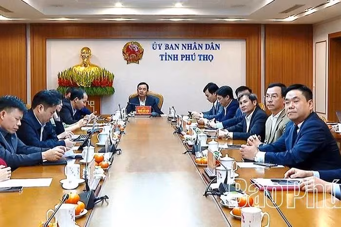 Phó Chủ tịch UBND tỉnh Quách Tất Liêm cùng các đại biểu dự hội nghị tại điểm cầu Phú Thọ.