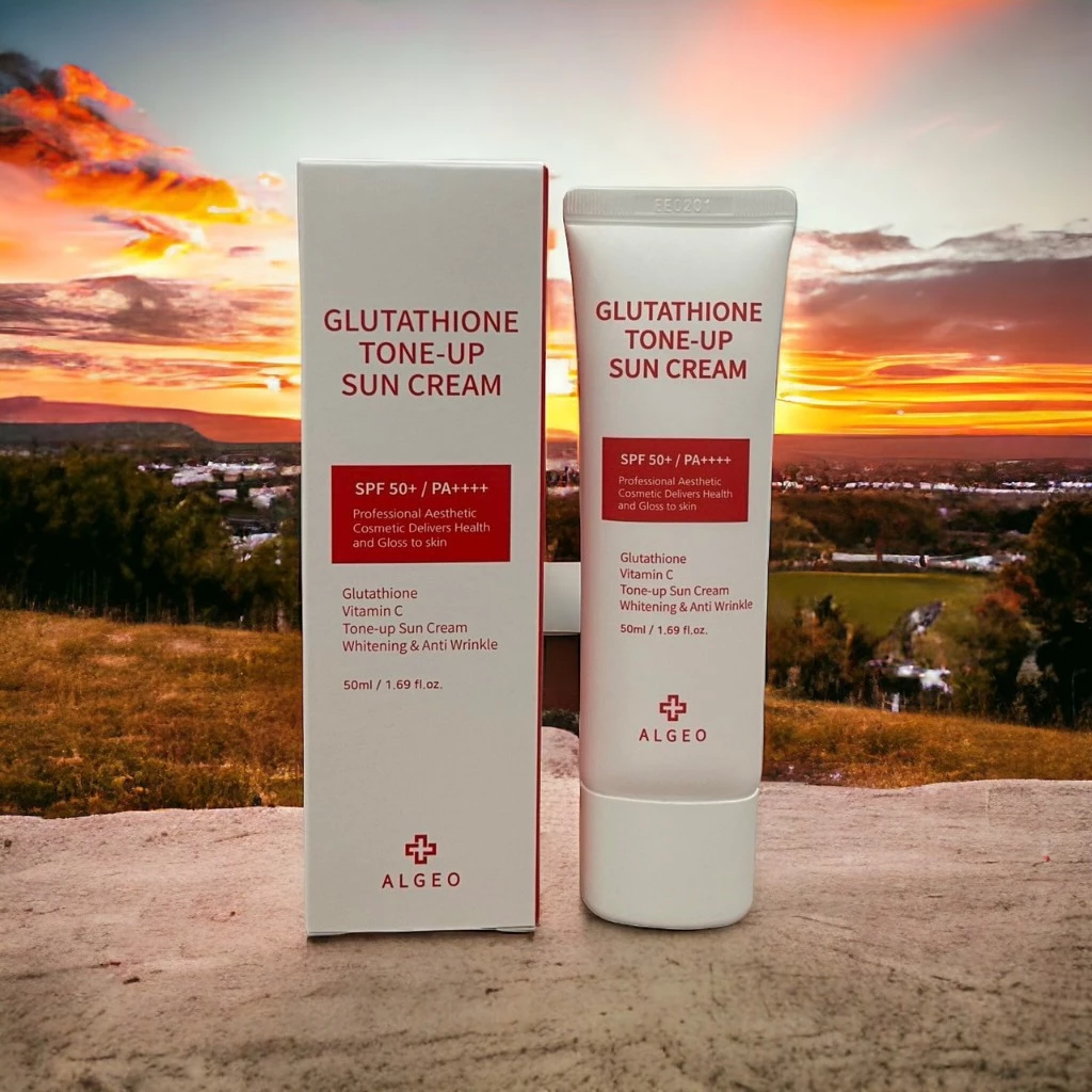 Kem chống nắng Algeo Glutathione Tone-up Sun Cream SPF 50+ / PA ++++ SP001431 là một trong những sản phẩm như vậy. Sản phẩm này không chỉ bảo vệ da trước các tia UV mà còn giúp ngăn chặn ánh sáng xanh và các loại bức xạ điện từ khác.