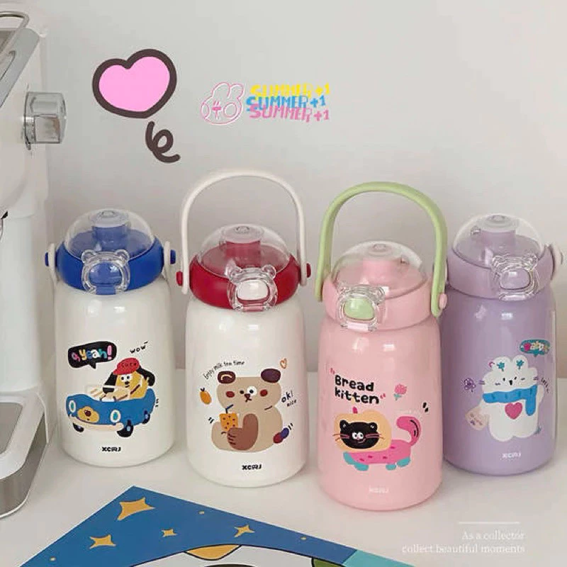🔥 Bình nước giữ nhiệt lõi thép 316 cao cấp dung tích 490ml in họa tiết hoạt hình dễ thương có quai xách đang giảm giá!
