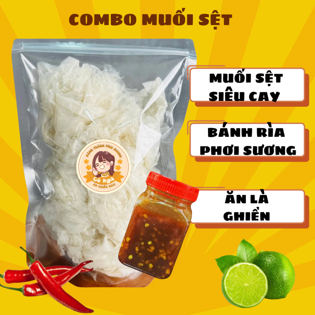 🔥 Combo muối sệt siêu cay Bánh tráng rìa phơi sương 200gr + Muối sốt siêu cay 120gr CÔ NGA bánh tráng chấm muối tắc đang giảm giá!