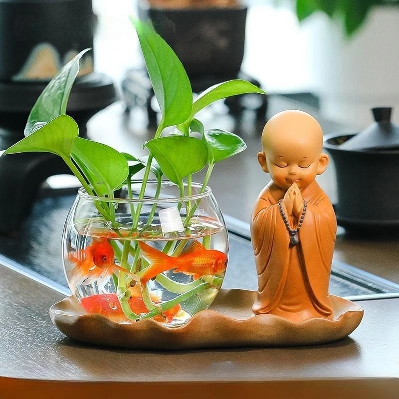 🔥 [SIZE LỚN] Bình thủy sinh trồng cây kèm tượng Chú Tiểu An Nhiên để bàn học, bàn làm việc, trang trí văn phòng đang giảm giá!