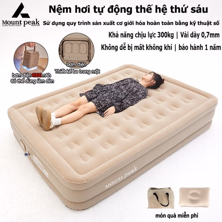 - Đệm hơi tự bơm đôi: Phù hợp cho hai người ngủ, có kích thước lớn hơn đệm đơn.