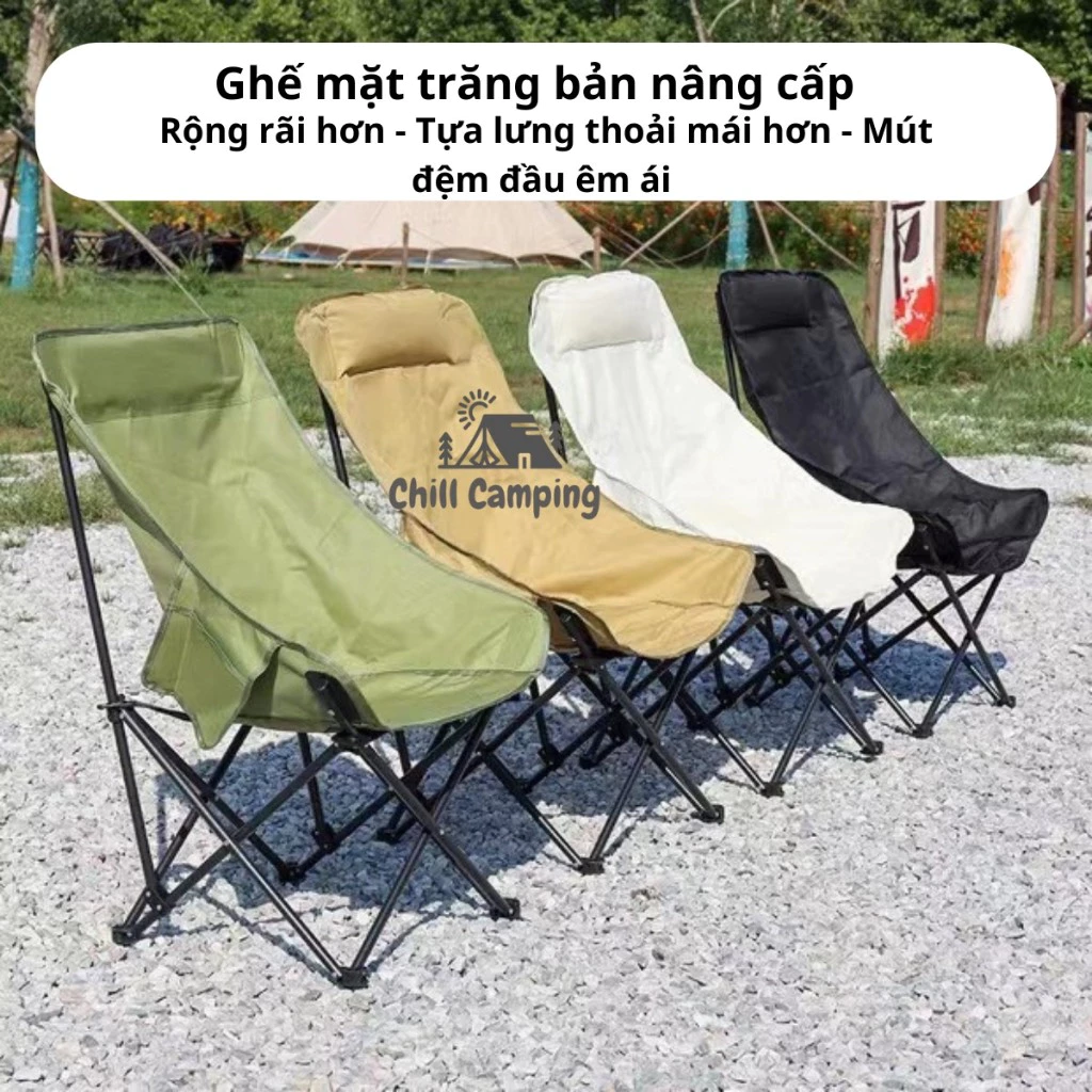 🔥 Ghế camping mặt trăng cao mút đệm đầu dựa lưng thư giãn, ghế du lịch dã ngoại gấp gọn chịu tải 130kg đang giảm giá!