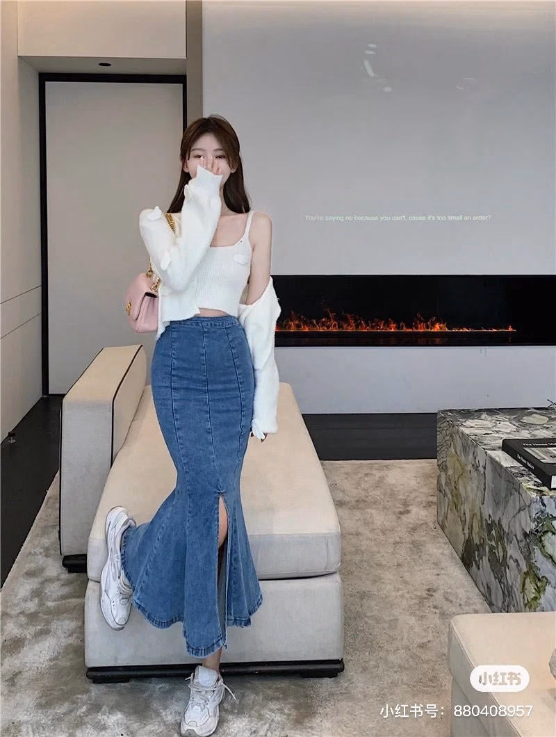 🔥 SET ÁO KIỂU MIX CHÂN VÁY JEAN ĐUÔI CÁ DÁNG DÀI đang giảm giá!