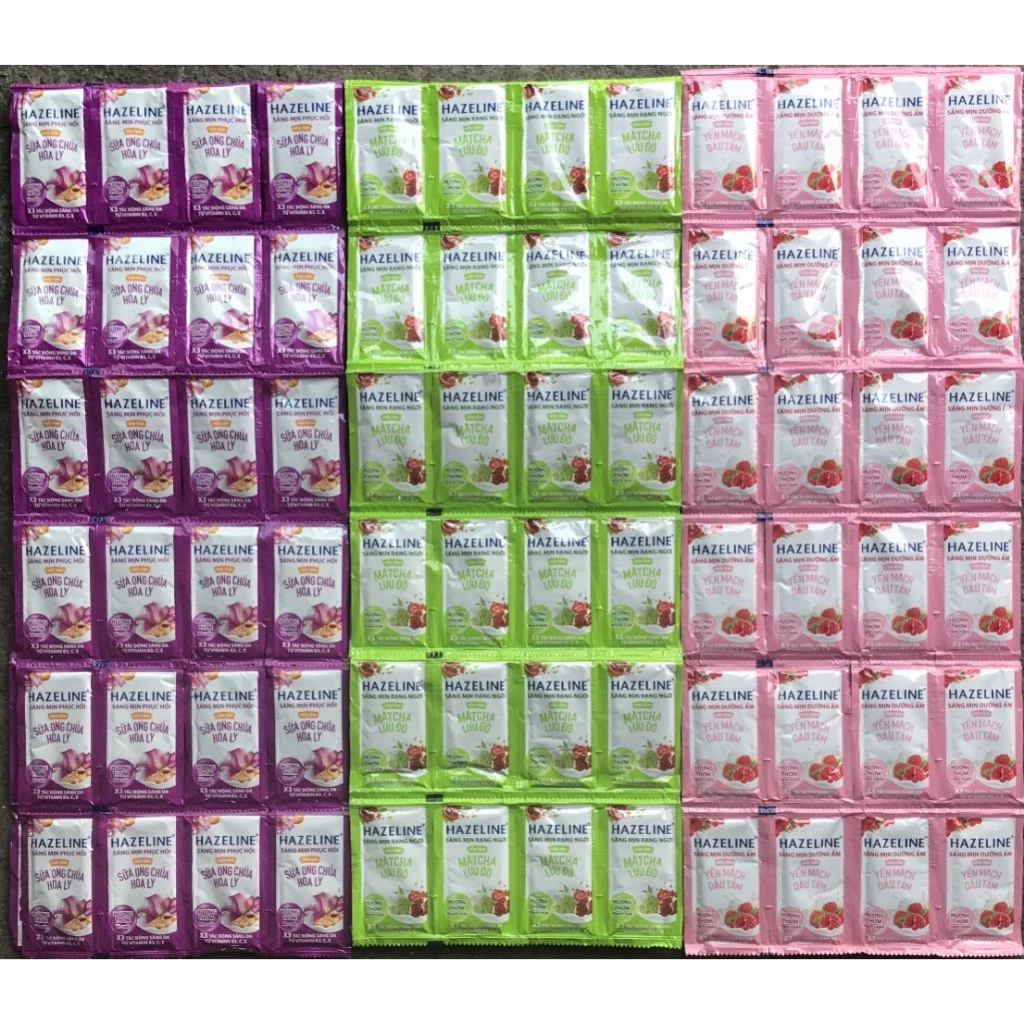 🔥 Sữa tắm dưỡng thể thiên nhiên trắng sáng da Hazeline dây 12 gói các màu đang giảm giá!