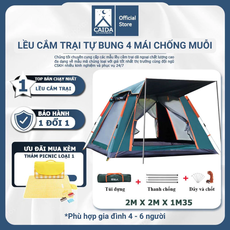 🔥 Lều cắm trại tự bung chống nước cho 4-5 người – Lều dã ngoại du lịch 2 cửa 2 lớp thông thoáng đang giảm giá!