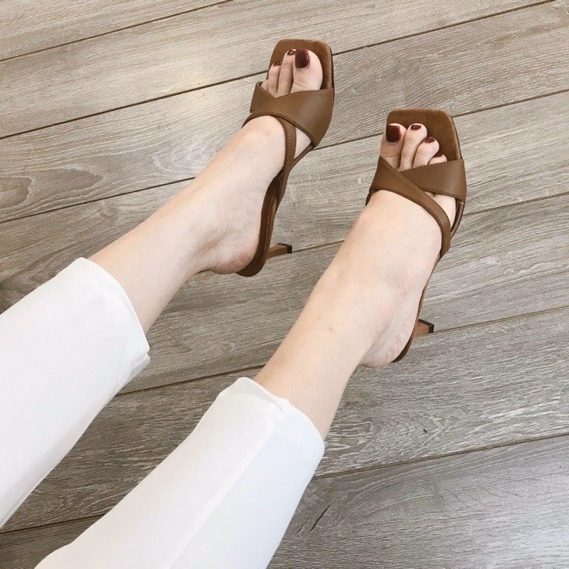 🔥 Dép Cao Gót Nữ cao 7P dây đan chéo màu Nâu bò sáng chân Kho Xưởng Bánh Bèo mã Sandal2X DéP Shoes DéP Shoe đang giảm giá!