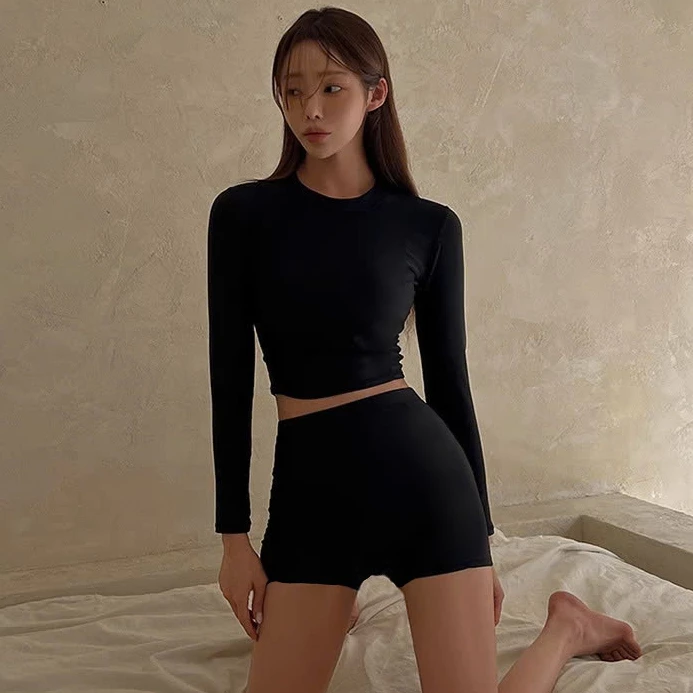 🔥 [ĐỒ BƠI CAO CẤP] Bikini, áo bơi tay dài mix quần short đai thun màu đen che bụng kín đáo (vải mịn đẹp, co giãn tốt) đang giảm giá!