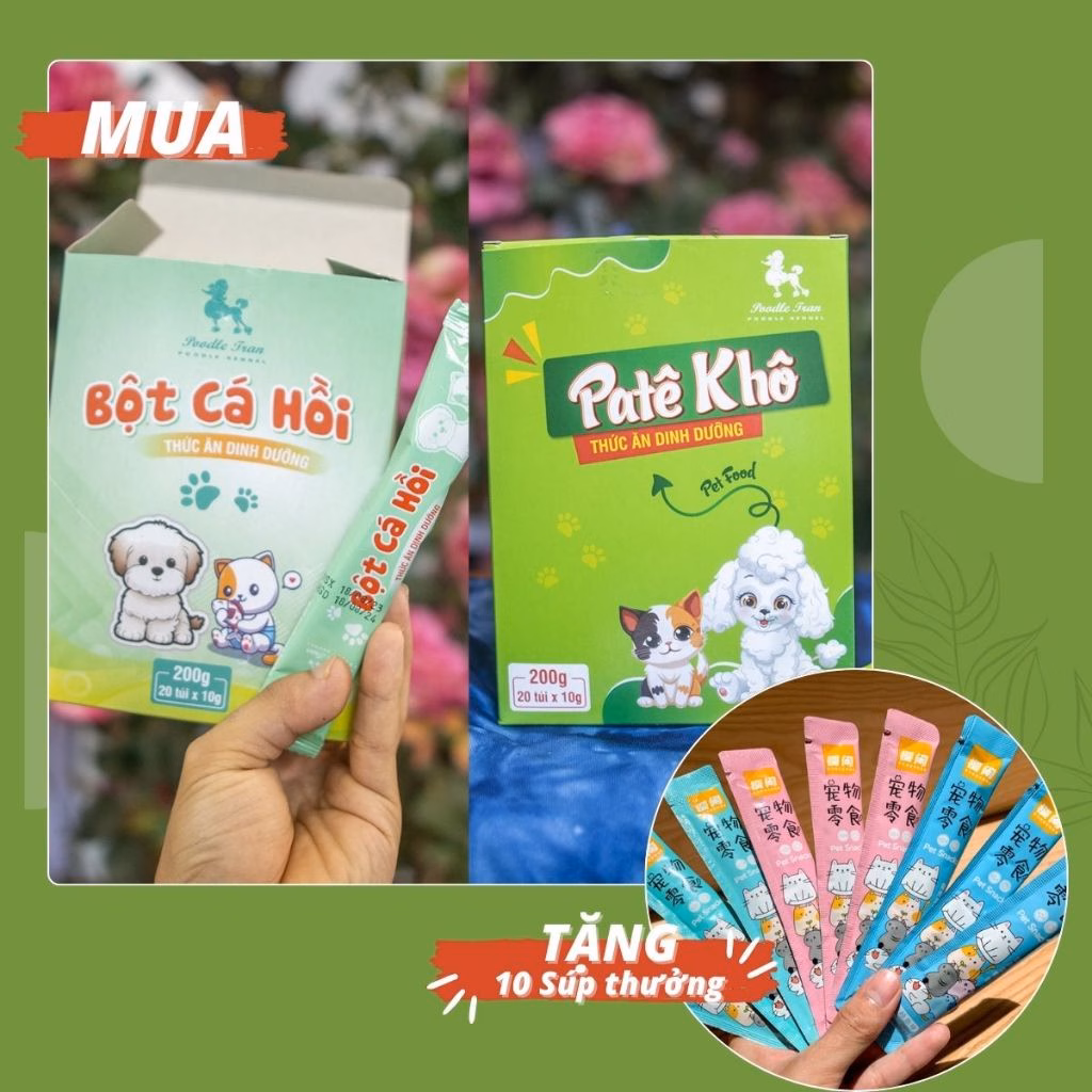 🔥 Pate Cho Chó Mèo ComBo Song Đao Bão Táp (1 hộp pate khô 200g+1hộp thịt cá hồi 200g + 10 Sup Thưởng) đang giảm giá!