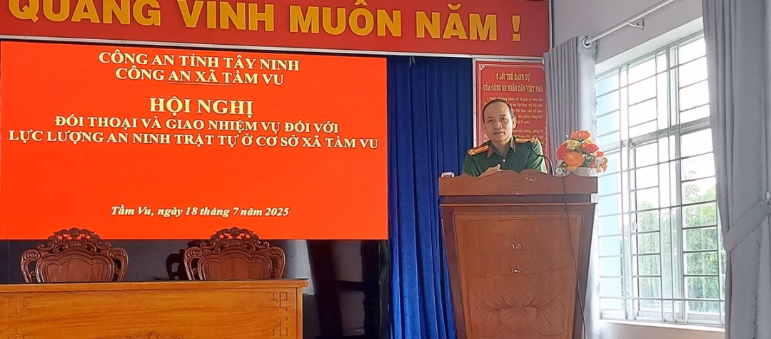 Công an xã Tầm Vu, tỉnh Tây Ninh vừa tổ chức một hội nghị quan trọng nhằm gặp gỡ và đối thoại với lực lượng tham gia bảo vệ an ninh trật tự cơ sở. Sự kiện này đã diễn ra với sự tham gia của các lãnh đạo địa phương, bao gồm đồng chí Phạm Văn Thật, Phó Bí thư Đảng ủy, Chủ tịch UBND xã, cùng các thành viên của Ban Chỉ huy Công an xã và 75 thành viên của lực lượng bảo vệ an ninh trật tự cơ sở. Thượng tá Phạm Ngọc Điền, Trưởng Công an xã, đã chủ trì hội nghị này.