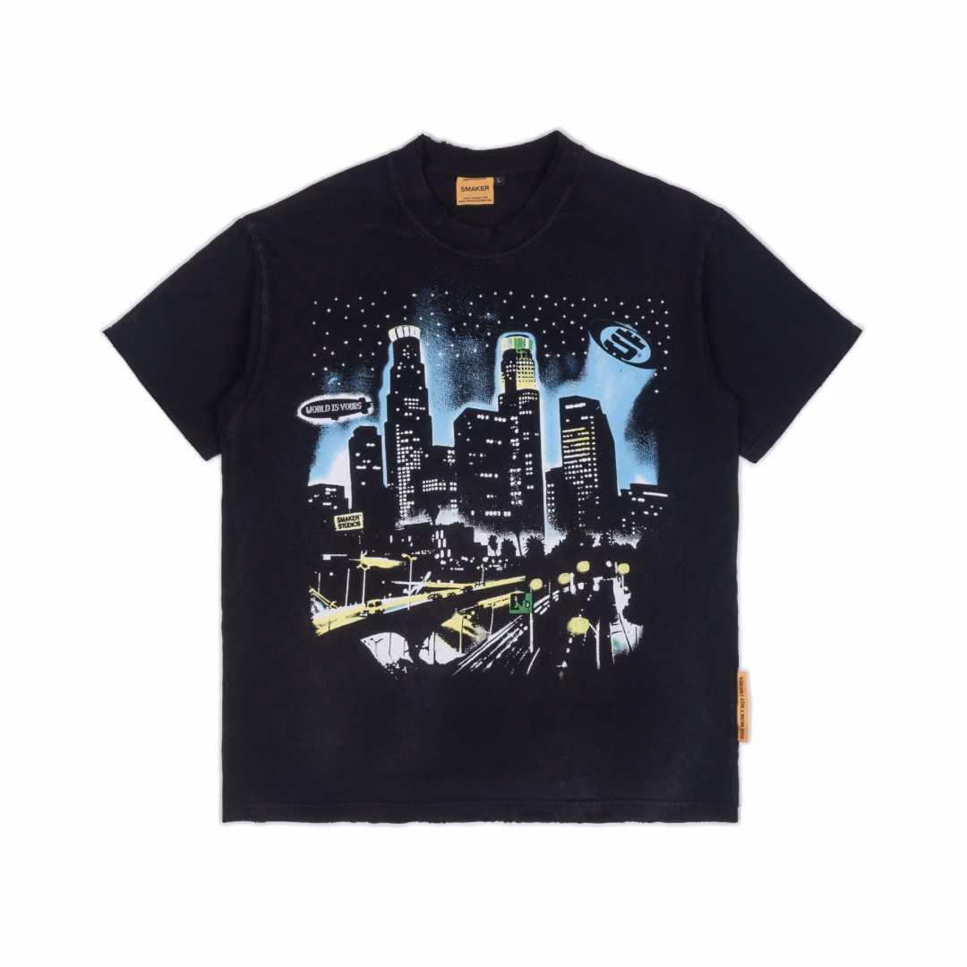 🔥 [SMAKER] Áo thun đen 100% cotton in hình thành phố – $MAKER CITY WASHED TEE IN BLACK đang giảm giá!