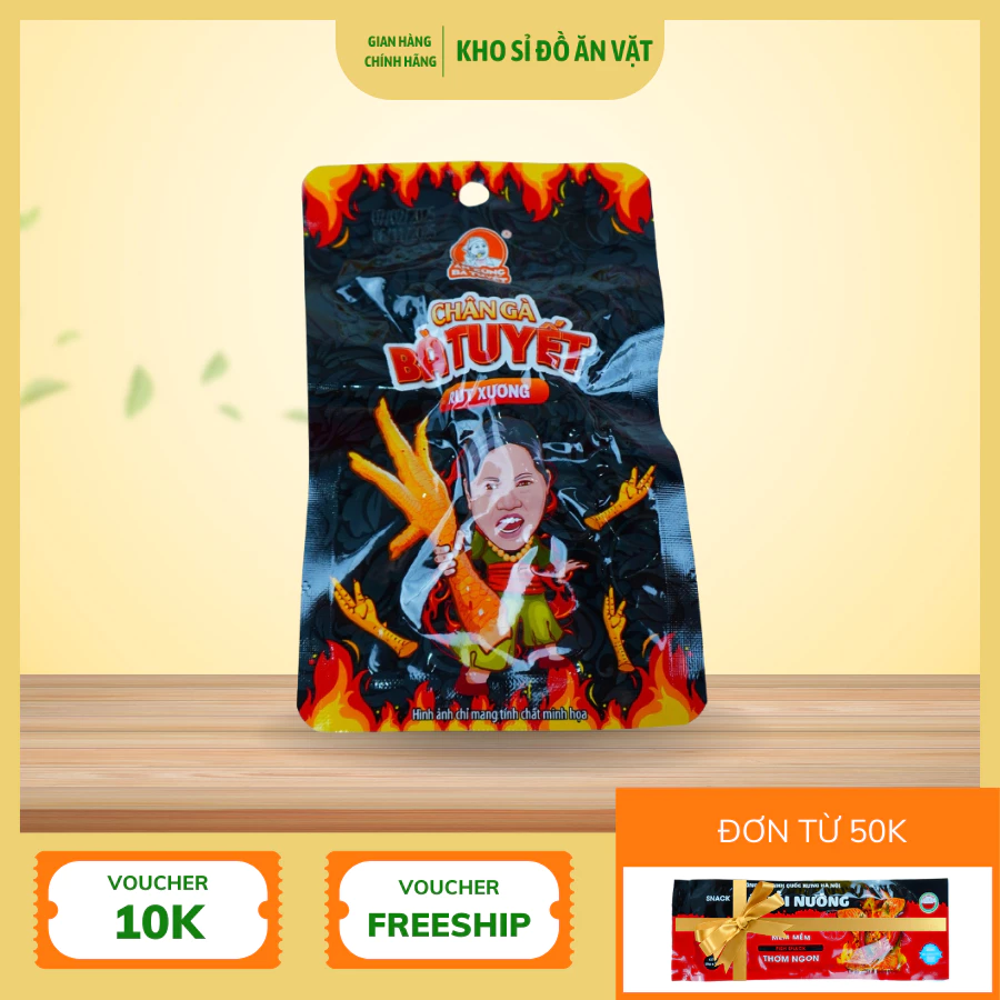 Với giá chỉ 55.000 đồng, bạn có thể thưởng thức được hương vị đặc biệt của chân gà đen bà Tuyết. Sản phẩm này đang được bán tại Kho sỉ đồ ăn vặt.